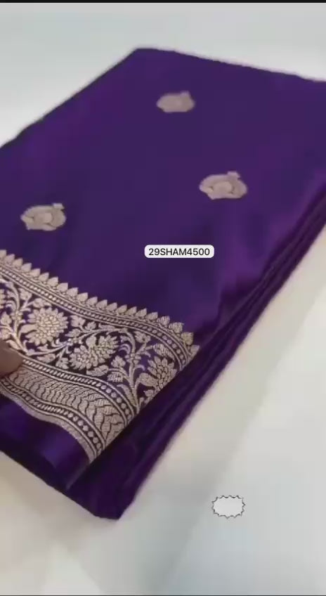 Purple- Banarasi Khaddi Mashru Katan Pure Silk Sarees