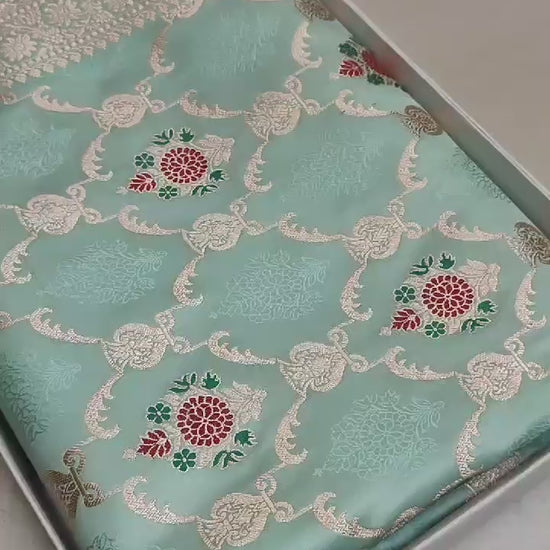 Experience luxury and tradition with our Banarasi Mashru Silk Saree. Made from premium Banarasi Mashru Silk, it features intricate zari work and rich floral, paisley, and Mughal-inspired motifs. Lightweight and soft with a natural sheen, this saree drapes effortlessly for a regal touch. Perfect for weddings, festivals, and special occasions. Blouse piece included.